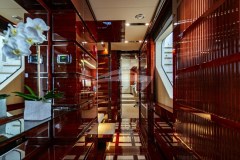 ALLORA is classified as a superyacht. The roomy aft deck, is right next to the attractive and sleek main salon. The main saloon is a friendly space to spend time when the weather is not ideal and serves as a location of entertainment. 5 welcoming cabins are thoughtfully spread out with vison for maximum room, access, comfort and privacy.