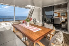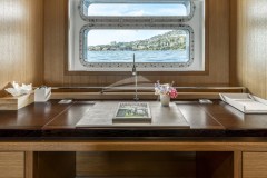 ARAOK II is classified as a superyacht. The prominent section of the yacht, spacious aft deck, elegantly connects to the well-equipped and inviting main saloon. The main saloon is a comfortable space with an abundance of seating areas and enables a number of media entertainment options. 4 tasteful cabins are thoughtfully spread out to allow for comfortable access and private setting.