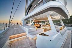 ADRIATIC DRAGON (Lagoon 77) is classified primarily as a sailing catamaran. The the heart of the yacht is the main saloon, which connects to the aft deck. The aft deck features a variety of seating areas and that's where most of the delicious meals are served. The tasteful cabins offer designer mattrace beds and feature ensuite bathrooms. The cabins offer unbeatable views in the morning and are located just below deck. Multiple portholes connect you with the outside world.