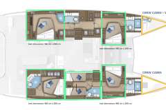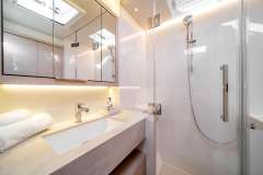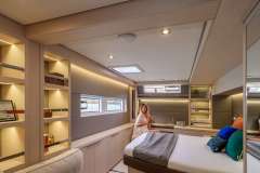 ADRIATIC PEARL is introduced primarily as a sailing catamaran. The the heart of the yacht is the main saloon, which connects to the aft deck. The aft deck is where heart of the yacht is and usually it is where you, as a charter guest, spend most of your time. The fascinating cabins offer unbeatable views in the morning and are located just below deck. The cabins are connected by stairs to the main saloon - roomy, comfortable and pleasant. Multiple portholes connect you with the outside world.