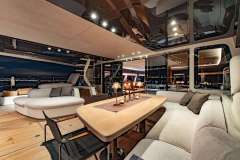 Cool and connected. Air conditioning keeps the interior comfortable, and the aft deck flows straight off the main salon so lunch, shade, and the sea stay in the same orbit.