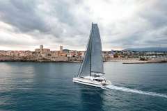 Catamaran, properly sized. CAT TUA is a 76-foot Lagoon Seventy-7 sailing catamaran built in 2021, set up to sleep 8 guests in 4 ensuite cabins. Wide-beam living without the “who took my seat” problem.