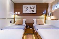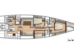 All guest cabins are forward of the saloon, owners cabin, 1 double cabin that converts to twin, and 1 bunk cabin, all with en-suite