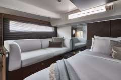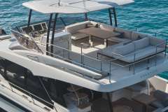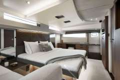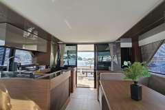 Diamond Si is offered primarily as a power catamaran. The the heart of the yacht is the main saloon, which connects to the aft deck. The aft deck is where heart of the yacht is and that's where most of the meals are served. The immersive cabins are connected by stairs to the main saloon - roomy, comfortable and pleasant. The cabins are located in the 2 massive hulls. Multiple portholes connect you with the outside world.