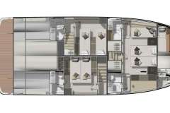 Weekly bareboat charter rates for 2026: till 30 May: €11000 (VAT included) 30 May - 04 July: €13600 (VAT included) 13 June -29 August: €15900 (VAT included) 29 August - 26 September: €13600 (VAT included) 26 September and on: €11000 (VAT included) + 650eur Charter Pack + refundable deposit of 5000eur The price includes: Bed linen, beach towels, welcome drink, 1 SUP. Skipper is highly recommended, but is optional. 250eur/day Optional extras: Sea Bob Kayak Wakeboard Water tube Water Ski Chaser Towable Knee Board Hostess Chef Early Check-in Extra towels and bed linen Payment conditions: 50% within 7 days of signing the charter agreement. Remaining 50% at least 5 weeks before the beginning of the charter. Embarkation time: From 5:00 PM Disembarkation time: By 9:00 AM Summer Base Port: Rogoznica Summer Operating Area: Croatia Winter Base Port: Rogoznica Winter Operating Area: Croatia Location Details: Based in Rogoznica, approximately 35 minutes' drive from Split Airport. Pick up in other locations available per request.What is the cabin arrangement of Diamond Si?