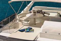 Dominique is classified as a superyacht. The key part of the yacht, spacious aft deck, elegantly connects to the meticulously composed main saloon. The main saloon is a well-design space that is well-equipped to shield from the elements in comfort and enjoyment and boasts a number of entertainment options. 4 tasteful cabins are laid out with vison for maximum room, access, comfort and privacy.