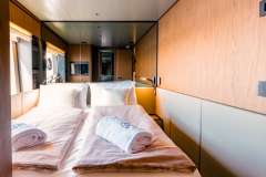 2 Twin Cabins, each featuring two single beds (195 x 70 cm) that can be converted into a double bed (190 x 160 cm). The en-suite bathroom of the port side twin cabin also serves as a Day Head for guests.