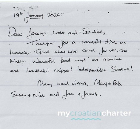 Thank you so very much for a very wonderful week aboard Looma yacht!