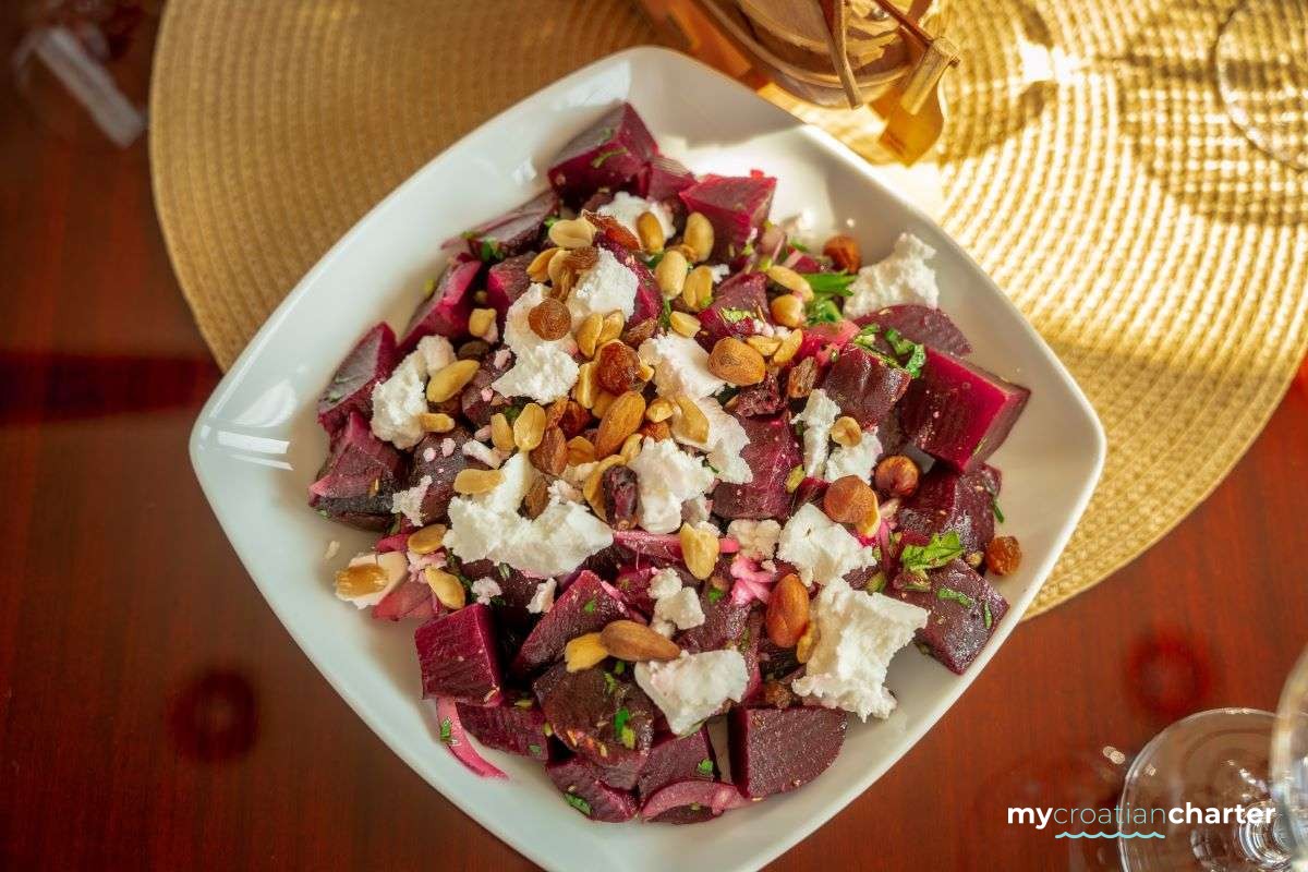 ---------- NOSTRA VITA RUNS CHARTERS FROM FRIDAY TO FRIDAY ---------- 2026 CHARTER RATES 01.05 - 29.05 21,239 Euro plus 13% VAT 29.05 - 12.06 23,894 Euro plus 13% VAT 12.06 - 26.06 25,664 Euro plus 13% VAT 26.06 - 28.08 27,434 Euro plus 13% VAT 28.08 - 11.09 25,664 Euro plus 13% VAT 11.09 - 01.10 23,894 Euro plus 13% VAT 01.10 - 30.10 21,239 Euro plus 13% VAT The charter rate includes fuel for 4 hours of cruising per day, 24/7 AC, the use of non - motorized water toys and WIFI. Extras: 1. CHARTER FEE Includes: Shipboard accommodation, permits, insurance, all equipment on board, tender with outboard engine, linens and towels, fuel for main engine, 4 h of navigation per day, yacht cleaning, sojourn taxes, gasoline for tender, diesel for generator (24h/day AC), Internet connection. 2. FOOD OPTIONS Half board: 550 € per person/week (breakfast, lunch OR dinner) Full board: 850 € per person/week (breakfast, lunch and dinner) 3. BEVERAGE OPTIONS A) Beverages on yacht bar only - by bar price list, in this option clients are not allowed to bring their own beverages on board. B) - All inclusive domestic package - includes Croatian wines, beers, spirits, soft drinks, natural and mineral water, coffee, tea, juices - 350 Euro per person per week - All inclusive dom. non alcoholic package - 190 Euro per person per week All Inclusive drinks package: 450 Euro per person per week (Croatian quality wines Rose, Red, White, Croatian Lager beer, water, carbonated drinks, juices, Gin Sapphire Bombay, Jameson Whiskey or Johnnie Walker Red Label, Absolut Vodka, Tequila J. Cuervo) C) Beverages completely supplied by clients - cost service of beverages: 1,500 Euro per week EXTRA COSTS - Port and marina fees (between 1,200 to 2,000 Euro per week depending on the route) - Delivery Fee for embarkation / disembarkation in any other port except base port, charged only if empty leg is caused 1,500 Euro - Watersports which require dinghy: 100 € per hourWhat is the cabin arrangement of NOSTRA VITA?