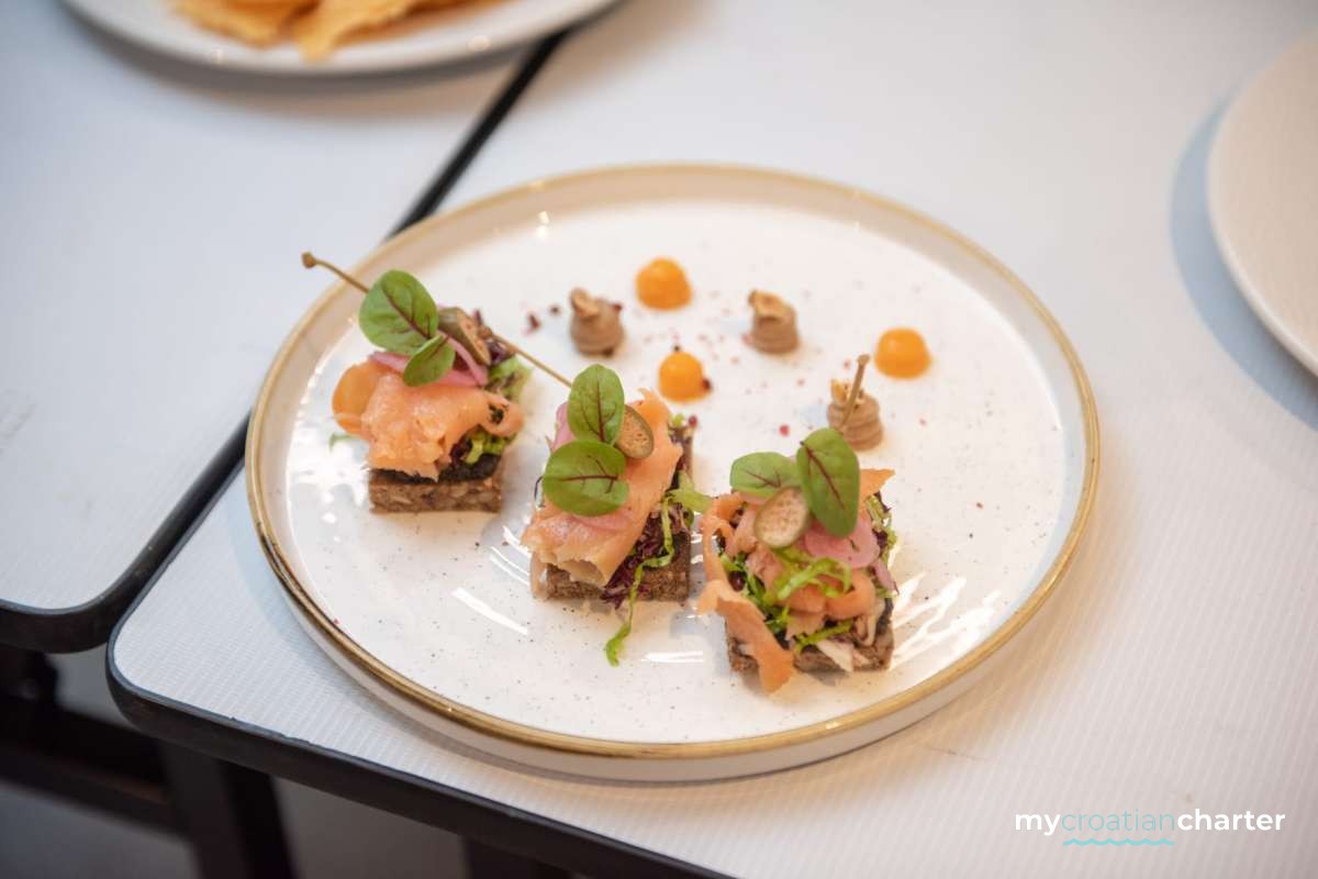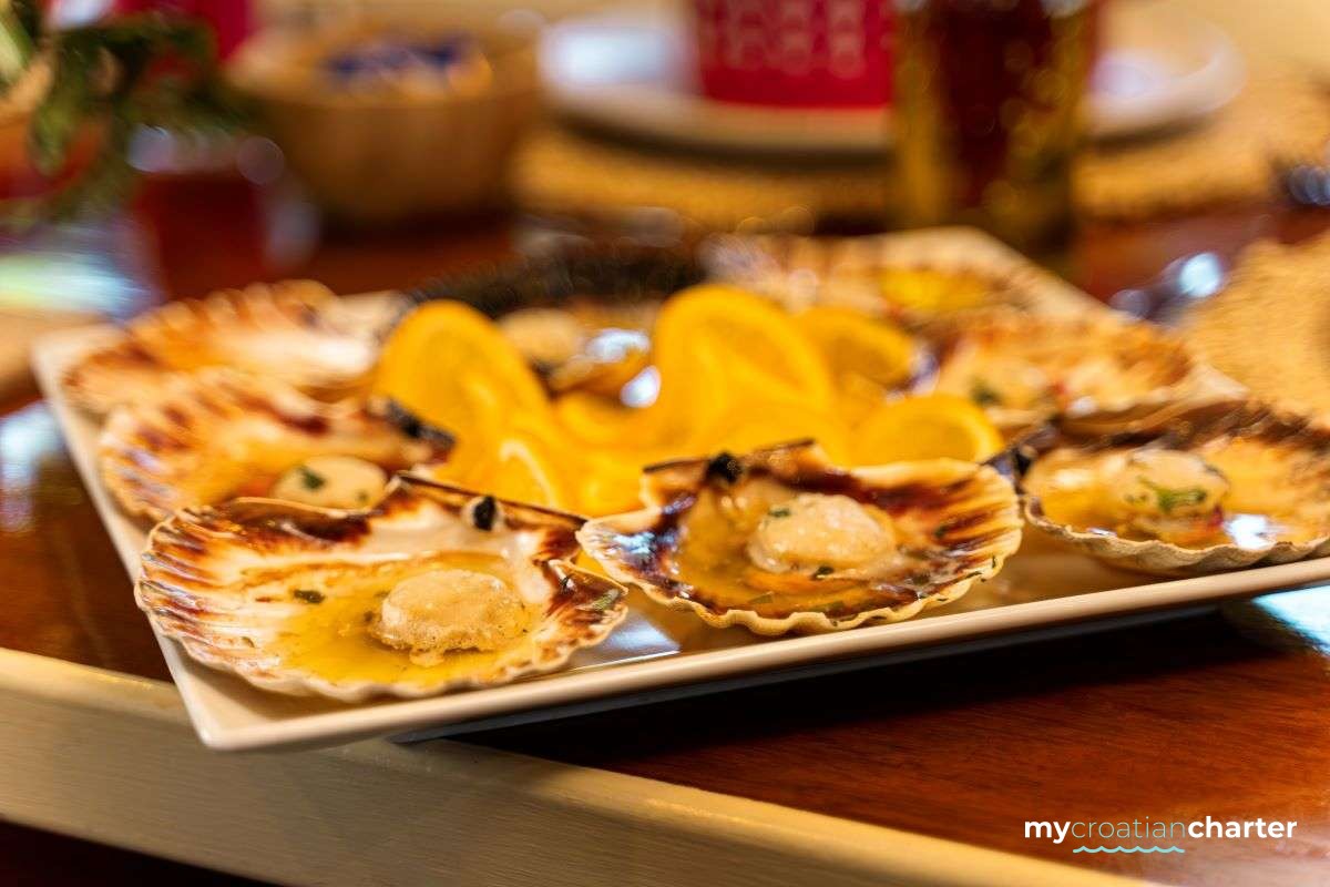 She remains unique in many ways. One of the rarest gulet -style vessels with 2 large master king size bed cabins located in the each end of the vessel complemented by 2 more double and 1 twin. All en-suite cabins are fully serviced with a high quality linen, towels, hair driers, beach towels, WIFI and spacious with partial or walk around berths ensuring maximum comfort in all cabins. She is also the only gulet - style vessel in the Adriatic built of a high quality solid mahogany making her properly insulated and sound proof. Her over 7 meters beam creates a spacious deck layout that extends from the full beam divan sofa in the aft, a large dining table in the aft, fully shaded sunbeds area mid deck coupled with an additional crescent shaped sofa in the bow. She is the only gulet - style vessel that runs charters from Friday to Friday. Finally she is attended by a lovely team of 4.
