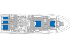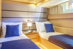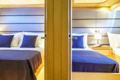 The motor yacht features Bed configuration: 1 x Master cabin: 200 cm x 200 cm 1 x VIP cabin: 160 cm x 195 cm 1 x double cabin: 150 cm x 180 cm 1 x twin cabin: 75 cm x 185 cm total 5 bathrooms: 4 cabin bathrooms + 1 on the same level as the salon. engines .