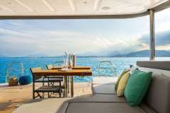 PRINCESS KARLA is presented primarily as a power catamaran. The yacht layout radiates from the main saloon, which connects to the aft deck. The aft deck is where heart of the yacht is and that's where most of the delicious meals are served. The tasteful cabins are located below the main saloon, connected by stairs (inquire about handicapped access). The cabins offer unbeatable views in the morning and are located just below deck. Multiple portholes connect you with the outside world.