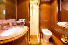 REBECCA V is classified as a superyacht. The prominent section of the yacht, inviting aft deck, leads to the the heart of the yacht - the main saloon. The main saloon is a comfortable space with an abundance of seating areas and serves as a location of entertainment. 4 elegant cabins are thoughtfully spread out for maximum privacy and comfort.