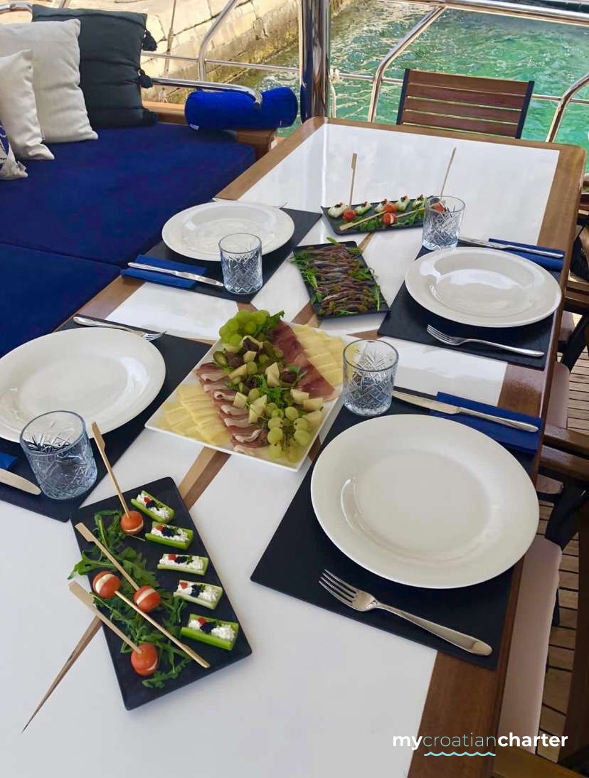 Comfortable accommodation for 10 guests in 5 guest cabins. There are 2 master cabins and 3 double cabins providing more than enough space to comfortably enjoy perfect cruise in Croatia!All of the cabins are air-conditioned and equipped to the highest standard. The usage of air conditioning is unlimited 24 hours per day. The saloon is spacious and comfortable providing inside dining area with yacht bar.