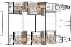 SEA DREAMS is classified primarily as a sailing catamaran. The central space of the yacht is the main saloon, which connects to the aft deck. The aft deck is expansive, with a comfortable dining and seating area and that's where most of the meals are served. The immersive cabins are located in the 2 massive hulls. The cabins are located below the main saloon, connected by stairs (inquire about handicapped access). Multiple portholes connect you with the outside world.