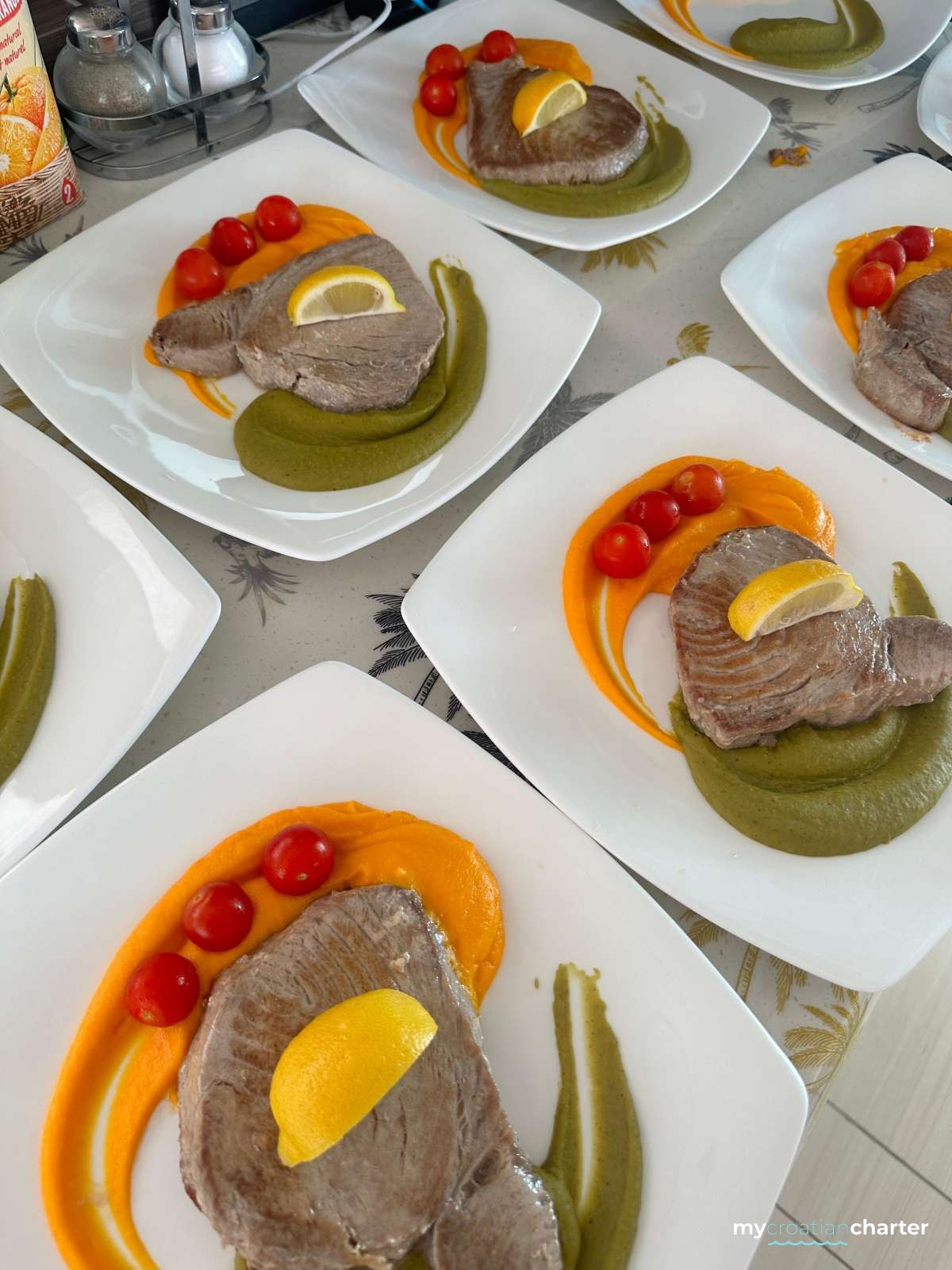 Sara personalizes each menu to suit her guests, using the freshest ingredients available and blending Mediterranean tradition with modern creativity — a style she describes as “when old meets modern.” Her repertoire includes vegan and vegetarian cuisine, fresh seafood, and refined Mediterranean dishes. Guests especially rave about her famous Monkfish Risotto and her unforgettable “chocolate miracle.”