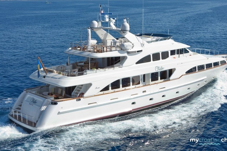 Introduced by DMA Yachting, the astonishing charter yacht LATIKO is a 143 ft motor yacht featuring a jetski and a hot tub. The highlights of LATIKO are her well-chosen interiors and experienced crew. LATIKO spends the summer and winter season in Croatia. She was delivered by the well-known ship builder Benetti in 2014. The spacious yacht layout features 5 large cabins and easily accommodates a group of 11 guests.