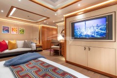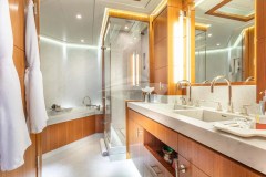 MAN OF STEEL is classified as a superyacht. The expansive aft deck, leads to the attractive and sleek main salon. The main saloon is a comfortable space to spend time when the weather is not ideal and boasts a number of entertainment options. 6 welcoming cabins are purposefully laid out to allow for comfortable access and private setting.