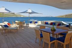 MARY-JEAN II is classified as a superyacht. The key part of the boat -expansive aft deck, elegantly connects to the attractive and sleek main salon. The main saloon is a comfortable space that is well-equipped to shield from the elements in comfort and enjoyment and enables a number of media entertainment options. 7 welcoming cabins are purposefully laid out for maximum privacy and comfort.