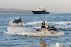Exciting water toys include rare jet skis on a monohull and premium SeaBobs for ultimate water fun. -