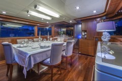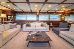 SEVENTH SENSE is classified as a superyacht. The prominent section of the yacht, spacious aft deck, elegantly connects to the attractive and sleek main salon. The main saloon is a friendly space to spend time when the aft deck might not be as desirable (at port, private conversations) and offers a range of entertainment options. 6 comfortable cabins are laid out with vison for maximum room, access, comfort and privacy.